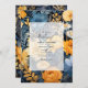 Marigold amarelo, marinho azul e cinza de ardósia convite para o casamento floral. Ideal para um casamento no jardim.