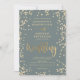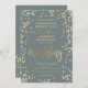 Foil de ouro amarelo moderno confete brilhando cinza verde-marinho convite para casamento com uma elegante escova de caligrafia.