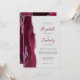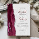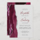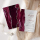 A borda esquerda deste elegante convite de casamento moderno apresenta uma cor d'água borrifada com borda cortada com cintilação falsa de prata. O texto personalizável combina cinzas de carvão e escrita à mão, placa de cobre e fontes itálicas em um fundo de cinza de luz. O lado inverso apresenta um design de burgundy e agate prateado.