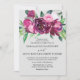 Este belo e elegante convite para o casamento floral apresenta um bouquet de rosa magenta e rosa pintado com aquarela colocado sobre um fundo de cinza de pomba. Este convite exclusivo do designer combina romance e elegância. © Julie McIver