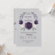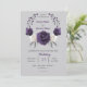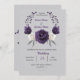 Flores roxas e brancas poeirentas com algumas cinzas prateadas no convite para o casamento da cinza