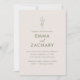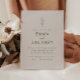 Uma simples e moderna cinza e um convite para o casamento verde-oliva, com letra simples e escrita, e um elemento botânico.