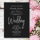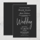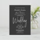 Um convite de casamento elegante e minimalista para cinzas profundas com texto branco.