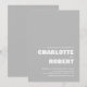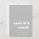 Um sofisticado convite para casamento de cinzas pálidas, com um texto branco moderno.