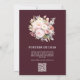 Celebre seu dia especial com o Convite de Casamento do Código QR Floral de cor rosa Floral Elegance Burgundy, uma combinação perfeita de sofisticação e conveniência moderna. Esse luxuoso convite apresenta sotaques florais ricos e burguentos contrastados com delicadas matizes cor-de-rosa, criando uma estética romântica e eterno. O elegante design enquadra perfeitamente a peça central: um código QR personalizado para fácil acesso de convidado aos detalhes do seu casamento, RSVP ou site de casamento.