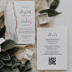 A borda esquerda deste elegante convite de casamento moderno apresenta uma cinza e uma aquarela branca, aparada com falso brilho de rosa. O texto personalizável combina manuscrito, copperplate e fontes itálicas em cinzas de carvão em um fundo branco. O verso fornece espaço para detalhes do casamento em um fundo branco sólido, junto com um código QR que os convidados podem digitalizar para visitar seu site e RSVP, o que economiza o custo de imprimir e enviar cartões RSVP separados.