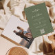 Um simples e moderno convite de casamento tradicional para na moda com um roteiro elegante de caligrafia e um código QR para fácil rsvp e detalhes para o seu casamento. Há uma foto de cheio na parte de trás que você pode facilmente mudar com seus Nomes e data de casamento.