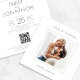 Casamento com código QR de foto quadrada minimalista. Disponível digitalmente e impresso. Um design simples e elegante. Basta substituir o exemplo de foto por seu próprio e personalizar palavras em cada lado, conforme necessário. O seu código QR para a conveniência dos seus hóspedes de digitalizar para visitar o seu Web site e o RSVP será gerado automaticamente quando alterar o URL do exemplo para o seu próprio URL do Web site.