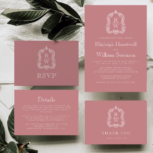Classic Monogram Crest Dusty Rose Wedding SuiteCriado por Akhates Designs