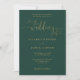 Este elegante convite de casamento verde esmeralda e ouro com caligrafia cardíaca pode ser personalizado com suas informações em tipografia quic com seus detalhes no site do casamento e seu código QR no verso. Projetado por Thisnotme©