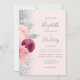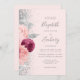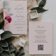 A borda esquerda deste elegante convite de casamento moderno apresenta um buquê floral em tons de burgundy e rosa-pincel, aparados com folha de falso prateado e folhagem de falso brilho e borrifados com brilho de prata. O texto personalizável combina o script de escrita manual de cinzas, as fontes em copperplate e itálico em um fundo cor-de-rosa pincelado. O verso fornece espaço para detalhes do casamento em um fundo sólido de blush, junto com um código QR que os convidados podem digitalizar para visitar seu site e RSVP, o que economiza o custo de imprimir e enviar cartas RSVP separadas.
