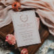 Código QR Elegante e clássico monograma de folha, terracotta e creme, tudo em um convite de casamento.