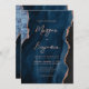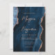 Este elegante convite de casamento apresenta uma imagem de fundo da marinho azul-aquarela agada, aparada com falso rosa dourado. O texto personalizável combina a letra rosa rosa moderna, a letra copperplate e a letra itálico. O verso apresenta um design de agate rosa e azul-marinho de coordenação. O verso fornece espaço para detalhes do casamento em um fundo de agate azul marinho correspondente, juntamente com um código QR que os convidados podem digitalizar para visitar seu site e RSVP, o que economiza o custo de imprimir e enviar cartões RSVP separados.