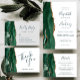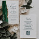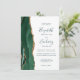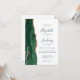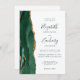 A borda esquerda deste elegante convite de casamento moderno apresenta uma esmeralda verde aquarela agate borda com falsa brilho dourado. O texto personalizável combina manuscritos brancos, copperplate e fontes itálicas em verde esmeralda em um fundo branco. O verso fornece espaço para detalhes do casamento em um fundo branco sólido, junto com um código QR que os convidados podem digitalizar para visitar seu site e RSVP, o que economiza o custo de imprimir e enviar cartões RSVP separados.
