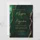Este elegante convite de casamento apresenta uma imagem de fundo da emerald green watercolor agate, aparada com falso brilho dourado. O texto personalizável combina manuscrito, protetor e fontes itálicas de cor dourada. O verso fornece espaço para detalhes de casamento em um plano de fundo de agata verde correspondente, junto com um código QR que os convidados podem digitalizar para visitar seu site e RSVP, o que economiza o custo de imprimir e enviar cartões RSVP separados.