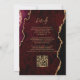 Este elegante convite de casamento mostra uma imagem de fundo da cor vermelha da água da burgundy, agada com brilho de ouro falso. O texto personalizável combina manuscrito, protetor e fontes itálicas de cor dourada. O verso fornece espaço para detalhes do casamento em um fundo de agata burgundy correspondente, junto com um código QR que os convidados podem digitalizar para visitar seu site e RSVP, o que economiza o custo de imprimir e enviar cartões RSVP separados.