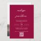 Um simples e moderno convite de casamento tradicional para na moda com um roteiro elegante de caligrafia e um código QR para fácil rsvp e detalhes para o seu casamento. Há uma foto de cheio na parte de trás que você pode facilmente mudar com seus Nomes e data de casamento.