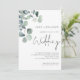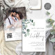 Sobreposição de Foto de Eucalyptus moderna no casamento de Código QR de Script posterior. Disponível digitalmente e impresso. Estilo botânico minimalista elegante, com um roteiro manuscrito para o casamento e o resto do texto que você pode personalizar facilmente. Um galho elegante de folhas de eucalipto aquáticas está no canto superior esquerdo. Altere o URL do exemplo no modelo com o URL do seu próprio site para gerar automaticamente o código QR no verso. Substitua a imagem de exemplo no verso por sua.