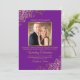 Convites Casamento de Código QR e Foto Dourada e Roxo Elega