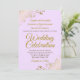 Este belo convite de casamento é na moda, simples e elegante. Ele apresenta letras douradas em um fundo púrpura púrpura pálido com filigre de folha falsa floral em cada canto. A design subestimada é compensada pelas ampolas e espirais do trabalho de arte. A parte traseira tem um código QR personalizável e uma nota de detalhes para que você possa direcionar seus convidados para um site para informações e RSVP.