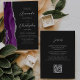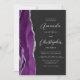 A borda esquerda deste elegante convite de casamento moderno apresenta uma cor d'água roxa, borda agitada com falso brilho prateado. O texto personalizável combina o script de cinza prateada e as fontes sans serif em um fundo preto de slate. O verso fornece espaço para detalhes do casamento em um fundo preto de slate sólido, junto com um código QR que os convidados podem digitalizar para visitar seu site e RSVP, o que economiza o custo de imprimir e enviar cartas RSVP separadas.