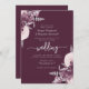 Este elegante convite para o casamento mostra buquês florais mauve saltados com verde folha de prata em dois cantos, em fundo roxo profundo. O texto personalizável combina fontes de cinza prateada se, itálico e de escrita manual. O verso fornece espaço para detalhes do casamento em um fundo sólido, junto com um código QR que os convidados podem digitalizar para visitar seu site e RSVP, o que economiza o custo de imprimir e enviar cartões RSVP separados.