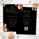 Este elegante convite de casamento pode ser personalizado com suas informações em tipografia de ouro-chico com seus detalhes no site de casamento e seu código QR no verso em um fundo preto. Projetado por Thisnotme©
