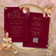 Este elegante convite de casamento pode ser personalizado com suas informações em tipografia de ouro-chico com seus detalhes no site de casamento e seu código QR no verso em um fundo burgundy. Projetado por Thisnotme©