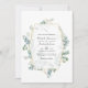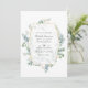 Convite de casamento herbário de eucalipto florestal selvagem com estrutura geométrica dourada concebida para ser rápida e facilmente personalizada de acordo com as especificações do seu evento. Ideal para qualquer tema ou casamento de jardim. O código QR no verso direciona para o seu local de casamento onde o pessoas pode aprender mais e rsvp.