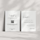 Convite de casamento de código QR preto e branco com um design minimalista moderno.