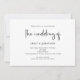Casamento com código QR preto branco-preto com script minimalista. Disponível digitalmente e impresso. Simples elegância com o Casamento de um roteiro de na moda. O resto do texto que você pode personalizar facilmente. Mostrado aqui em preto sobre branco, no entanto, as cores de texto e fundo podem ser alteradas se você desejar por meio da opção personalizar mais. Gerar automaticamente um código QR para o seu site de casamento no verso, alterando o URL da amostra para o seu próprio URL do site, para a conveniência dos convidados para o rsvp online.