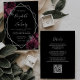 Este elegante convite de casamento moderno apresenta um quadro geométrico de prata decorado com buquês florais de burgundy e prata em fundo preto. O texto personalizável combina a escrita manual imétrica de cinzas prateadas, a placa de cobre e as fontes itálicas. O verso oferece espaço para detalhes do casamento, juntamente com um código QR que os convidados podem digitalizar para visitar seu site e RSVP, o que economiza o custo de impressão e envio de cartões RSVP separados.