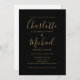 Apresentando nomes de estilo de assinatura, este elegante convite de casamento preto e ouro pode ser personalizado com todas as suas informações especiais sobre o dia do casamento na frente, seus detalhes do site do casamento e seu código QR no verso. Projetado por Thisnotme©