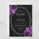 Este elegante convite de casamento moderno apresenta um quadro geométrico de prata decorado com ameixa e buquês florais de prata num fundo preto. O texto personalizável combina a escrita manual imétrica de cinzas prateadas, a placa de cobre e as fontes itálicas. O verso fornece espaço para detalhes do casamento em um fundo preto sólido, junto com um código QR que os convidados podem digitalizar para visitar seu site e RSVP, o que economiza o custo de imprimir e enviar cartões RSVP separados.