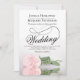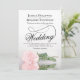 Este belo convite para o casamento apresenta uma linda fotografia de uma rosa rosa-rosa penteada de solteiro longo que se estendeu sobre o seu lado refletindo numa piscina de água com ondas e ondulações. O design apresenta um roteiro de caligrafia rico com um fazer de cauda longa e encaracolada, moderno e clássico. Uma maneira elegante, sofisticada e chique de convidar seus amigos e família para compartilhar seu dia especial. A parte traseira do cartão tem uma nota personalizada e um código QR direcionando seus convidados para o site do casamento para obter detalhes e RSVP.