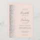 A margem esquerda deste elegante convite de casamento moderno apresenta um design de cintilação de prata. O texto personalizável combina a escrita manual de cinzas, a cópia e as fontes itálicas em um plano de fundo cor-de-rosa esbranquiçado. O verso fornece espaço para detalhes do casamento em um fundo sólido de blush, junto com um código QR que os convidados podem digitalizar para visitar seu site e RSVP, o que economiza o custo de imprimir e enviar cartas RSVP separadas.