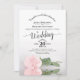 Este belo convite para o casamento apresenta um design floral impressionante com caligrafia lítica e um rosa cor-de-rosa pálido, pálido e longo solteiro, que se encontra ao seu lado, espelhado numa piscina de água. A parte de trás tem espaço para você listar detalhes e informações junto com um código de QR personalizável para direcionar seus convidados para o site de casamento para informações e/ou para RSVP. O convite foi concebido de modo a funcionar bem com um recorte normal ou de arco. Na moda, elegante, elegante, e glam, este convite vai causar uma impressão duradoura e é uma maneira maravilhosa de convidar os seus convidados a partilhar a vossa alegria no vosso dia especial.