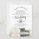 Este belo convite para o casamento apresenta um maravilhoso design floral com caligrafia de lacy e uma rosa branca de marfim empinada de solteiro que se encontra ao seu lado, espelhada numa piscina de água. A parte de trás tem espaço para você listar detalhes e informações junto com um código de QR personalizável para direcionar seus convidados para o site de casamento para informações e/ou para RSVP. O convite foi concebido de modo a funcionar bem com um recorte normal ou de arco. Na moda, elegante, elegante, e glam, este convite vai causar uma impressão duradoura e é uma maneira maravilhosa de convidar os seus convidados a partilhar a vossa alegria no vosso dia especial.