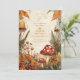 Uma design brilhante e romântica inspirada pelo encanto da floresta, esta modelo apresenta cogumelos vermelhos pintados manualmente, samambaias, bagas e folhas de outono. Perfeito para casais que amam a natureza planejando uma floresta, conto de fadas ou casamento rústico na temporada de outono. O texto totalmente editável permite personalizar todos os detalhes do seu dia especial.