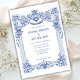 Convite para Casamento de Coluna Azul Barroca Floral Elegante.
