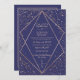 Este elegante e luxuoso convite para casamento é perfeito para um evento clássico e formal. Ele apresenta um confete de brilho dourado cintilante imprimido espalhado em volta e sobre uma borda geométrica fina dourada do terrário e fundo azul marinho. É chico, glamouroso, moderno, simples e bonito; o melhor design para o seu evento especial e importante. ***NOTA DE DESIGN IMPORTANTE: Para qualquer solicitação de design personalizada, como solicitações de correspondência de produtos, alterações de cor, mudanças de posicionamento ou qualquer outra solicitação de alteração, clique no botão "MENSAGEM" ou envie um e-mail ao designer diretamente em lafemme.art@gmail.com. Você pode até enviar um e-mail para ela solicitando um design completamente personalizado e novo.
