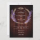 Uma coroa rústica de lavanda e trigo faz uma bela ilustração, pintada à mão em aquarela digital, para decorar este convite elegante e rústico para casamento que também apresenta um fundo de conselho de madeira. Romântico e charmoso, é uma escolha encantadora para um casamento de celeiro, um casamento ao ar livre, um casamento de jardim ou qualquer lugar rústico.