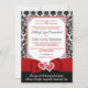 Se você encontrou o amor de sua vida e quer convidar toda sua família e amigos para testemunhar a junção de suas duas vidas e corações então esse adorável convite de casamento em sotaques vermelhos de preto e branco, e unir corações sobre uma fita vermelha e uma imagem de arco correndo pelo centro certamente chamará a atenção de todos. O lado frontal tem uma cor damasco preta e branca com sotaques de canto preto e um divisor de rolagem. Os nomes da noiva e do noivo também estão em preto com letras vermelhas para seus detalhes de casamento. Abaixo dos corações, está um verso personalizável que diz, "Este dia, eu vou casado meu melhor amigo, O que eu vivo, rir, sonhar, amar" em uma escrita branca sobre fundo negro. A parte de trás é uma damasco preto-e-branco com vermelho e tem detalhes de RSVP e informações do site de casamento, fazer que esta seja uma opção muito barato para aqueles casais com um orçamento apertado. Se você precisar de outros itens correspondentes, envie seu pedido por e-mail para niteowlstudio@gmail.com ou use o recurso de bate-papo Zazzle para entrar em contato.