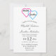 Papelaria de casamento com corações cor-de-rosa e azuis entrelaçados