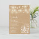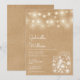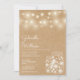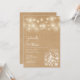 Um convite de casamento na moda rústico com luzes de cordas bonito e jarras de pedras. Os nomes dos casais felizes são colocados em um roteiro elegante acima dos detalhes especiais do casamento em um fundo kraft rústico. O reverso apresenta um fundo kraft rústico correspondente. Projetado por Thisnotme©
