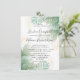 É um belo convite para o seu dia especial. Este é um design original com grande folhagem tropical em tons verdes e contornos de ouro macios. Fácil de personalizar com suas informações exclusivas.