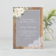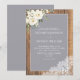 Estamos tão felizes com esta cinza formal tradicional, convite para fotos de casamento. Não foi fácil aparecer com uma design de luz rústica que sentimos ter atendido nossas demandas estéticas, mas então fizemos isso, e agora estamos apaixonados! Apresentando tipografia de guiões com letra de mão, florais brancos de aquarela, textura de madeira de casca de mel, renda francesa de Alençon falsa e luzes de cordas brilhantes e quentes. Parte de uma suíte de casamento que esperamos que você ame tanto quanto nós: https://www.zazzle.com/collections/trendy_light_gray_rustic_wood_lace_floral_wedding-119389924642700932 Copyright Elegant Invites, todos os direitos reservados.