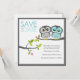Estes adoráveis anúncios de salve a data apresentam uma ilustração vetorial fofa de um casal de corujas empoleiradas em um galho de árvore. Muitos esquemas de cores disponíveis em nossa loja e mais disponíveis mediante solicitação.