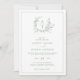Crescente verde de flor silvestre clássico e convite de casamento monograma.