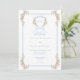 Entra num mundo de elegância eterno com o nosso belo convite para o casamento de flor selvagem Barroca. Uma crista real, enfeitada com suas iniciais, fica no topo desta design, rodeada por flores de aquarela macia e uma fita delicada. Inchaços graciosos de flores silvestres enquadram cada esquina, enquanto uma refinada e empoeirada dupla borda azul encerra seus detalhes de casamento em sofisticada harmonia. Perfeito para casais que procuram um convite que sussurra luxo, romance e o charme da grandiosidade do mundo antigo. Que o seu casamento comece com um design como o dia em si. Criado pela imprensa simplesmente de farmácia.
